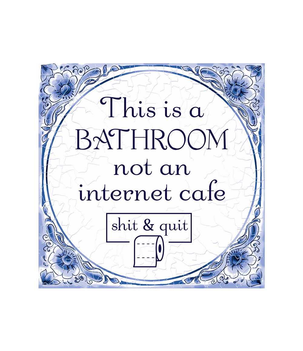 Paper Dreamsin Delftin sininen laatta, jossa on hauska teksti Kylpyhuone , myy varmasti hyvin kaupoissa. Tämä johtuu siitä, että Delftin sinisissä laatoissa on hauskoja tekstejä tai sitaatteja, mikä tekee niistä paljon henkilökohtaisempia. Delftin siniset laatat on valmistettu keramiikasta ja ne ovat kooltaan 15 x 15 senttimetriä.