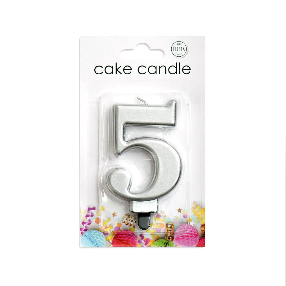 Kynttilä 5 vuotta hopea metallinen 8cm