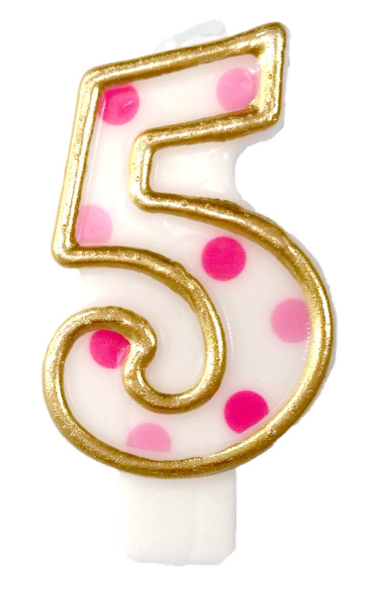 Kynttilä 5 vuotta Vaaleanpunaiset pisteet 8.5cm