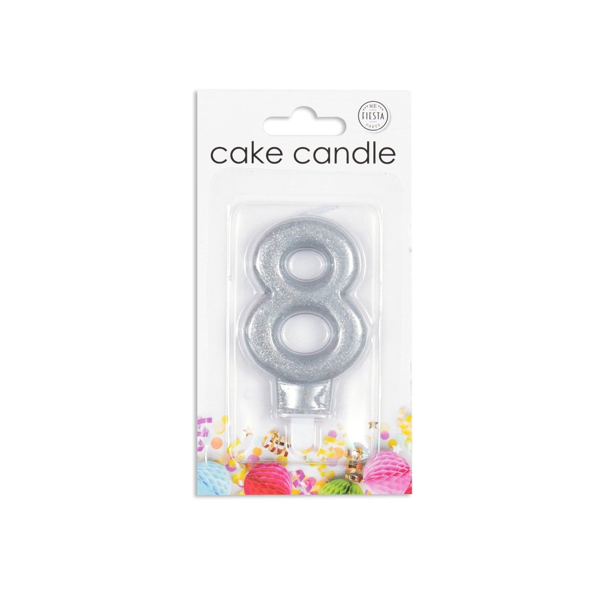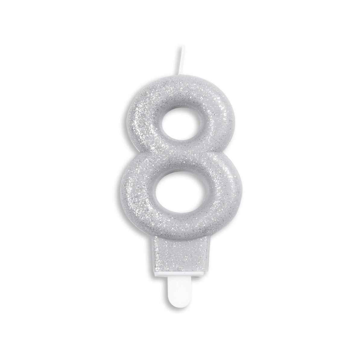 Kynttilä 8 vuotta Hopea Glitter 7cm