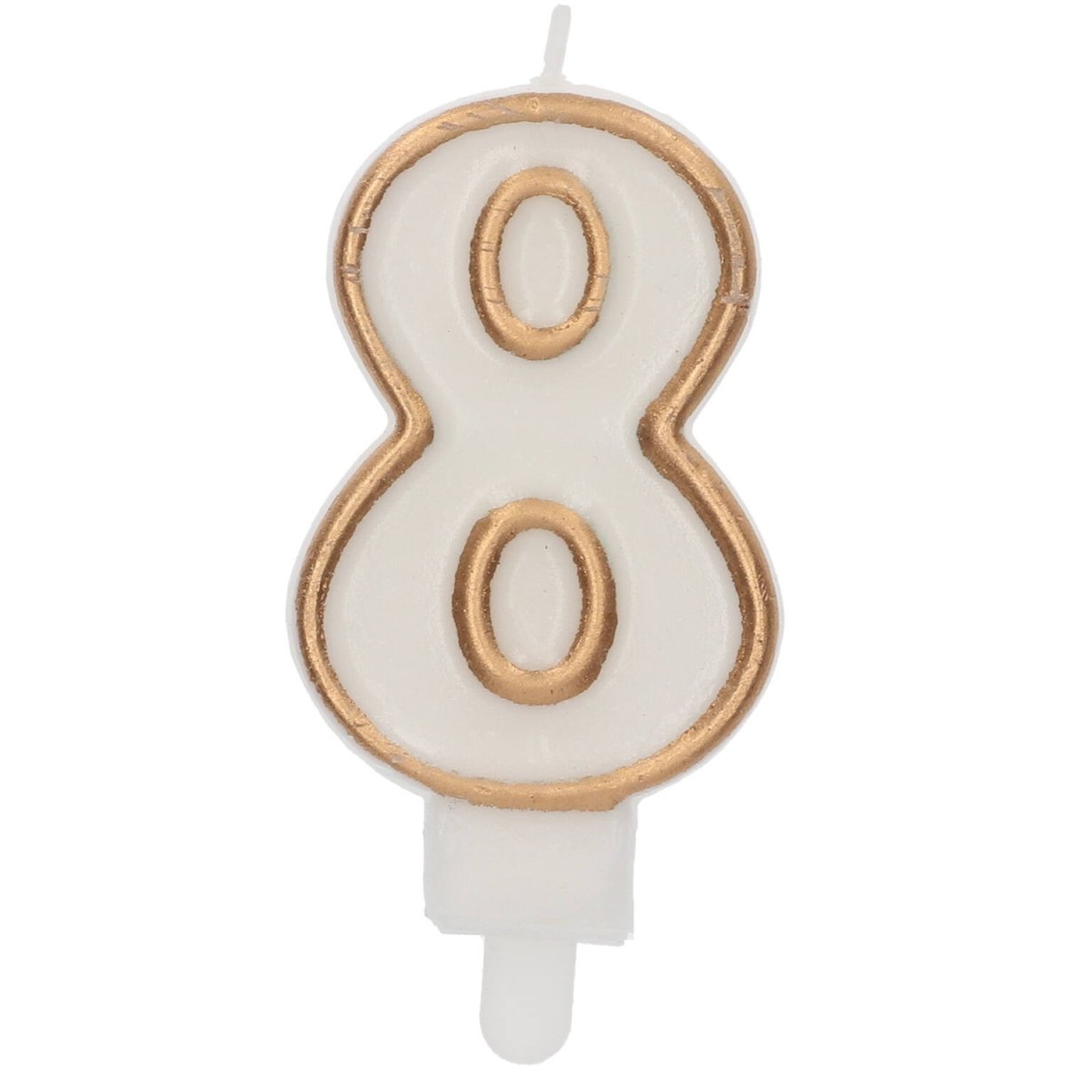 Kynttilä Simply Chic Gold Figure 8, 9 cm. Sisältö: 1 kynttilä. Väri: kultainen. Käytetään esimerkiksi seuraavissa juhlissa/juhlatilaisuuksissa: Syntymäpäivä, lastenjuhla ja vuosipäivä. Kynttilä on noin 9 cm pitkä. Tuote on valmistettu vahasta.