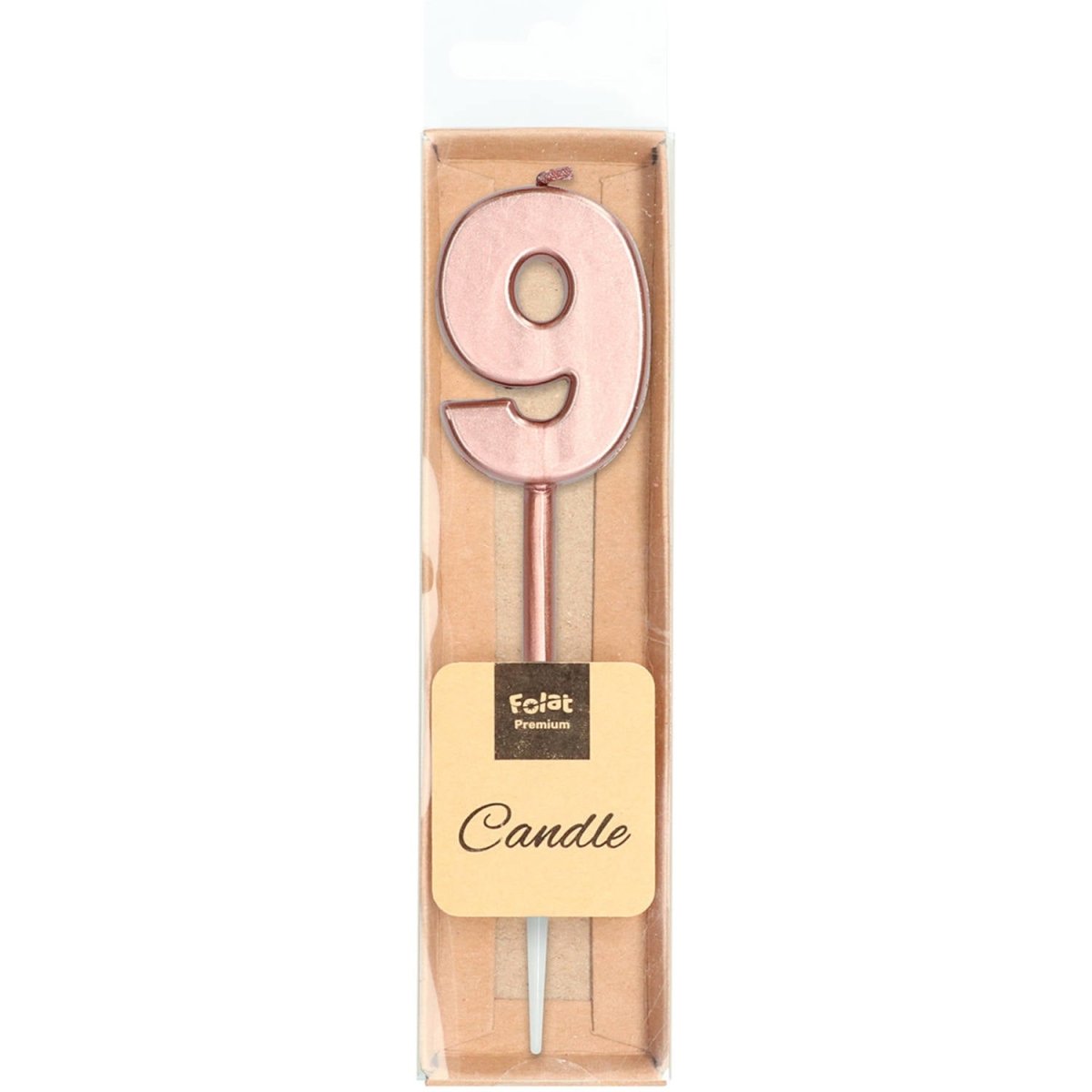 Kynttilä numero 9 Ruusukultainen metallinen. Sisältö: 1 kynttilä. Väri: Ruusukulta. Käytetään esimerkiksi seuraavissa juhla-/juhlatilaisuuksissa: Syntymäpäivä, vuosipäivä ja lastenjuhlat. Mitat: 14 cm korkea. Tuote on valmistettu vahasta.
