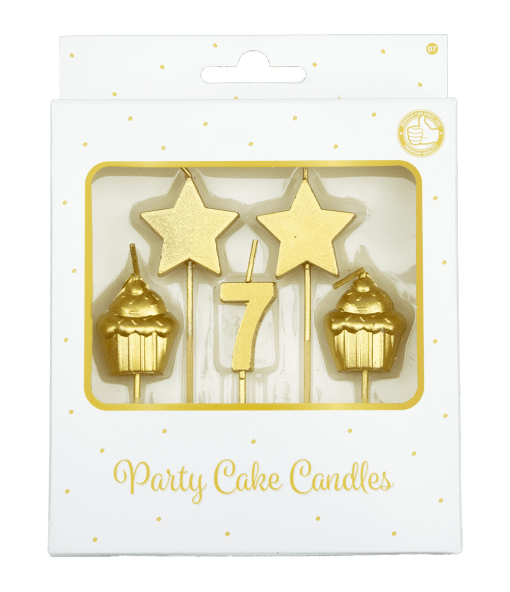 Kynttilät 7 vuotta Cupcake Gold 17.5cm