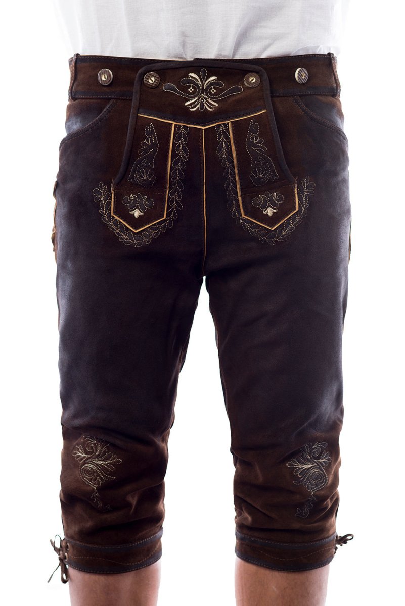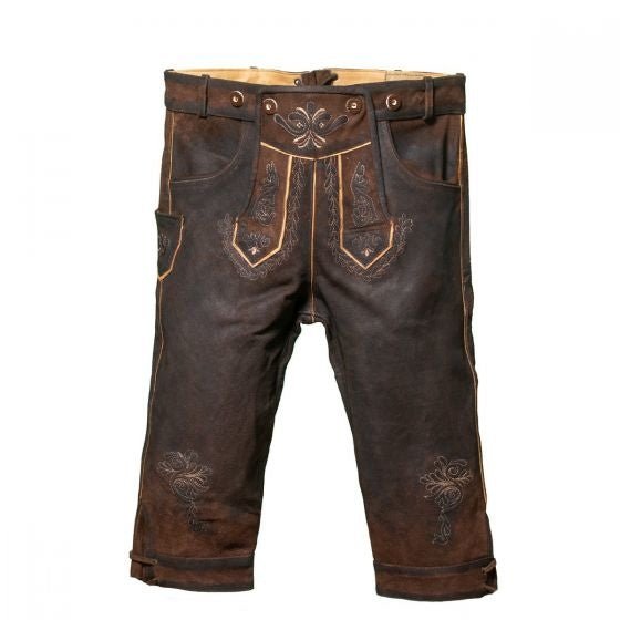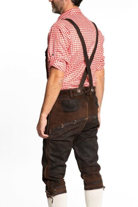 Nahkahousut Nahka Pitkät Tummanruskeat ommellut ja henkselit