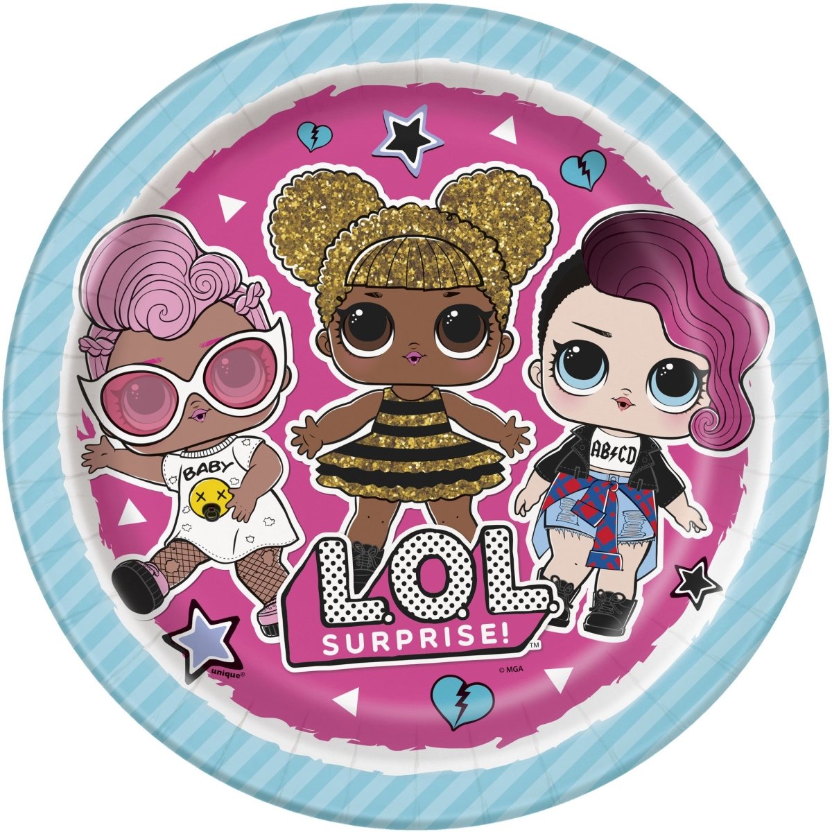 Tämä halkaisijaltaan 23 senttimetrin kokoinen 8 lautasen sarja on valmistettu paperista LOL Surprise -teemalla. Sopii aterioille tai buffetiin.