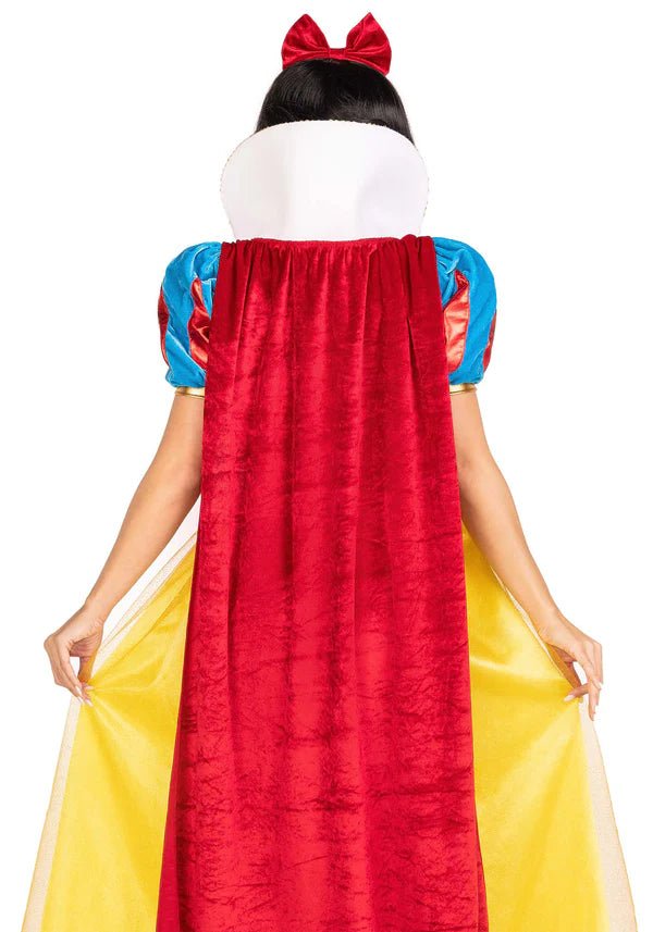 Kokeile satujen taikaa tämän lumoavan 3-osaisen Deluxe Lumikki -asun avulla! Tähän tyylikkääseen kokonaisuuteen kuuluu klassinen sametti- ja satiinipallopuku, jota koristavat punotut kultaiset putket ja majesteettinen pystykaulus. Irrotettava samettiviitta antaa kuninkaallisen lisän, ja söpö rusettipäähine viimeistelee prinsessan lookin. Täydellinen pukujuhliin, satuteemoihin tai lempisadun uudelleenelämiseen! 🌟💖