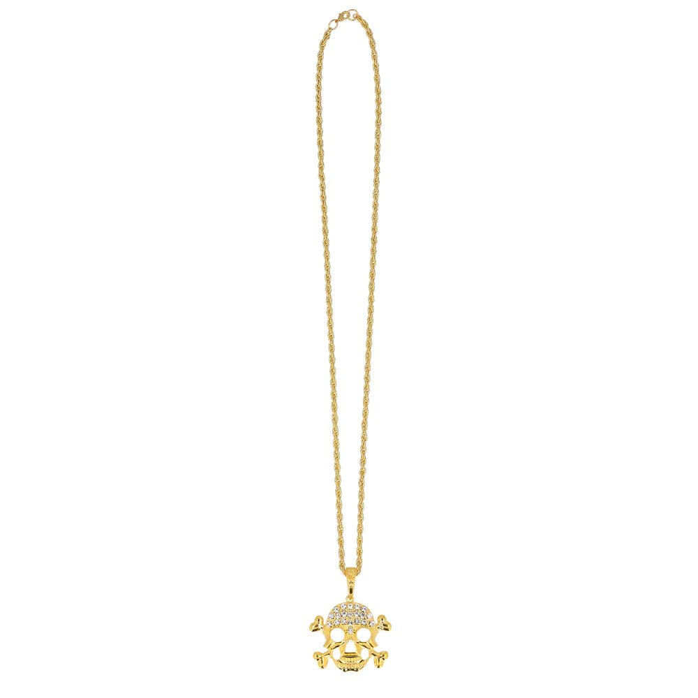 Tämä siisti kultainen pääkallon muotoinen kaulakoru on viimeistelty timanteilla. Se on sopiva asuste luurankoasun kanssa, mutta voi itse asiassa sopia mihin tahansa Halloween- tai merirosvopukuun.
