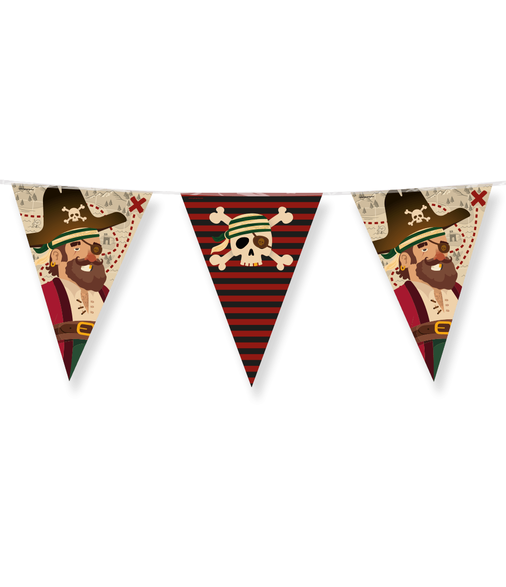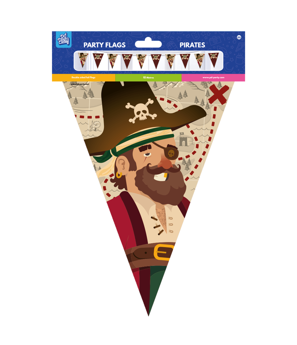 Lasten juhlat eivät voi sujua ilman lippuja ja jos ostat nämä juhlaliput folio Piraatit niin saat heti lippusiiman ainutlaatuisella teemalla! Liput on valmistettu foliosta ja lippusiiman pituus on 10 metriä.