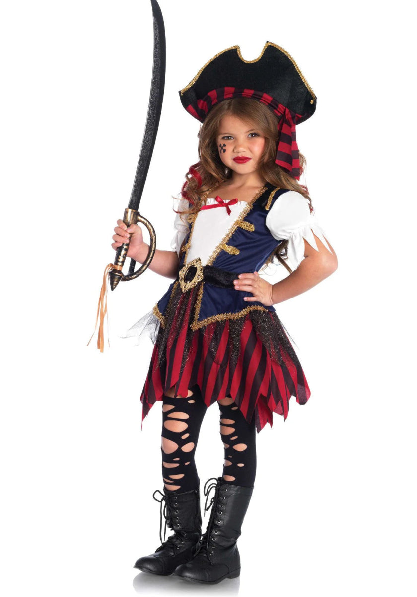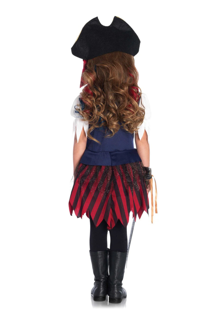 Pikkutytöistä tulee suuria seikkailijoita tässä Karibian merirosvopuvussa. Tämä kaksiosainen merirosvosetti sisältää kullalla koristellun mekon, jossa on kiinnitetty vyö , ja sopivan merirosvohatun huivilla. Täydellistä oman laivasi kapteeniksi! ⚓🌊