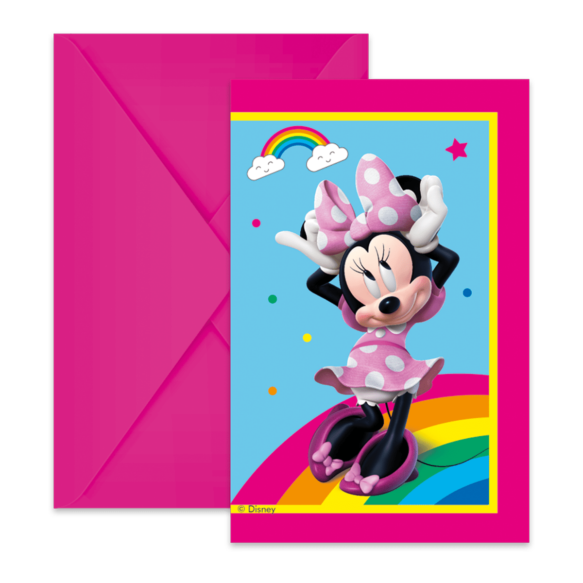 Pakkauksen sisältö: Minni Hiiri kutsut ja kirjekuoret