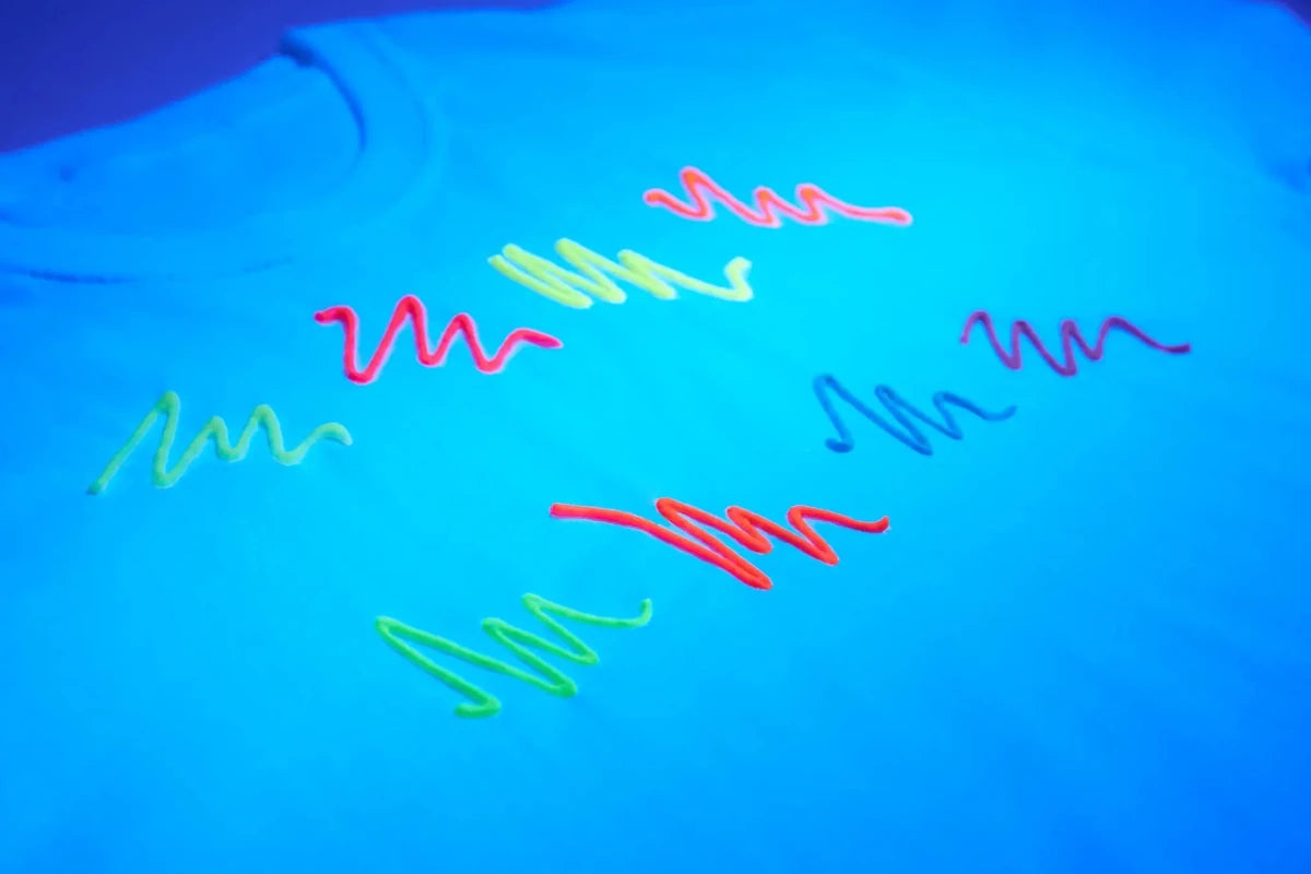 Pigmenttinen, pysyvä Neon UV -tekstiilimaali pitkäkestoisiin, huomiota herättäviin kuvioihin. Kaikki 8 huomiota herättävää väriä loistavat päivällä neonhohtoisina ja antavat valtavan hehkun UV/mustassa valossa yöllä. Anna vaatteille, asusteille ja muullekin uudelle elämälle luomalla häikäiseviä kuvioita eloisilla ja fluoresoivilla punaisilla, vihreillä, oransseilla, sinisillä, keltaisilla, vaaleanpunaisilla, violeteilla ja näkymättömillä tekstiiliväreillä. Nämä kahdeksan uskomatonta väriä mullistavat taidemaailmasi.