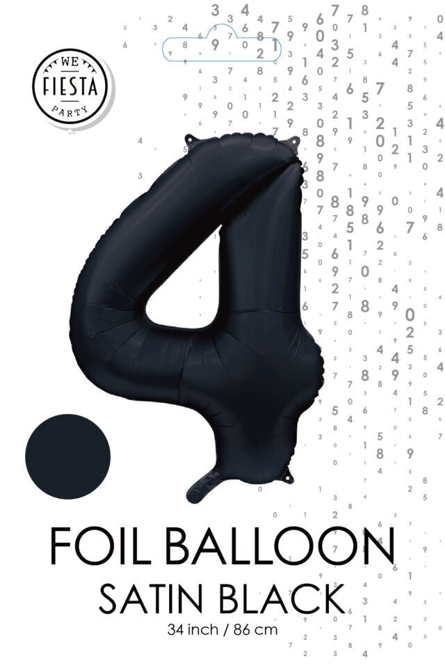 Musta hahmo ilmapallo 4 vuotta kiiltävä 86cm