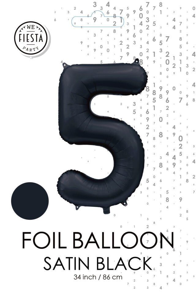 Musta hahmo ilmapallo 5 vuotta kiiltävä 86cm