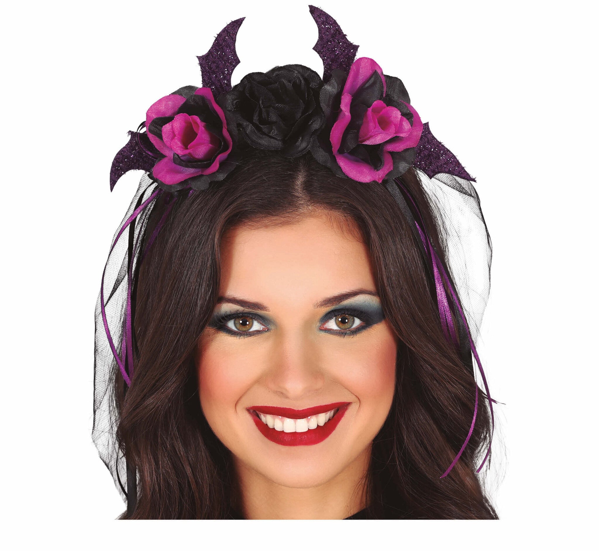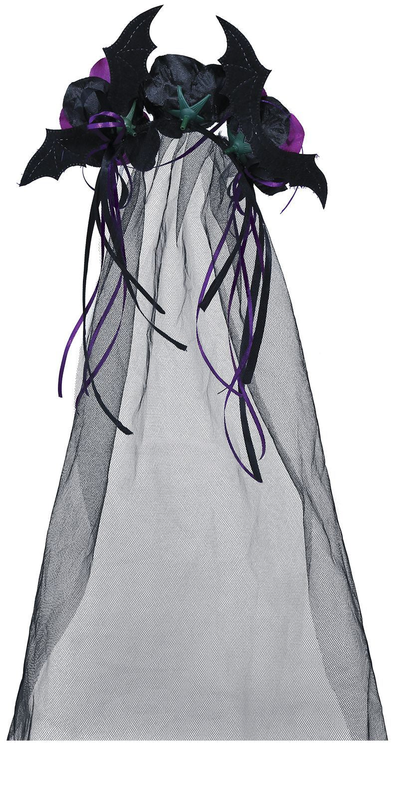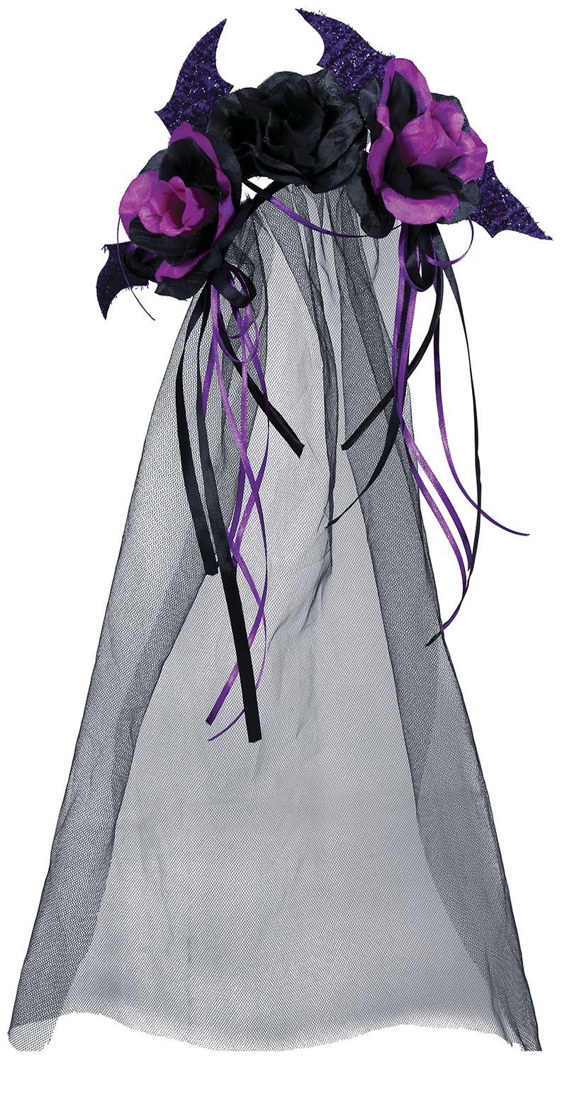 Musta Halloween hiuspanta violetti kukkia ja huntu