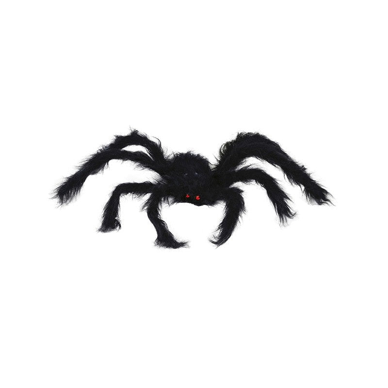 Musta hämähäkki, jolla on karvainen ulkonäkö, ihanteellinen synkän ja synkän ympäristön koristeluun. Täydellinen Halloween-juhliin.
