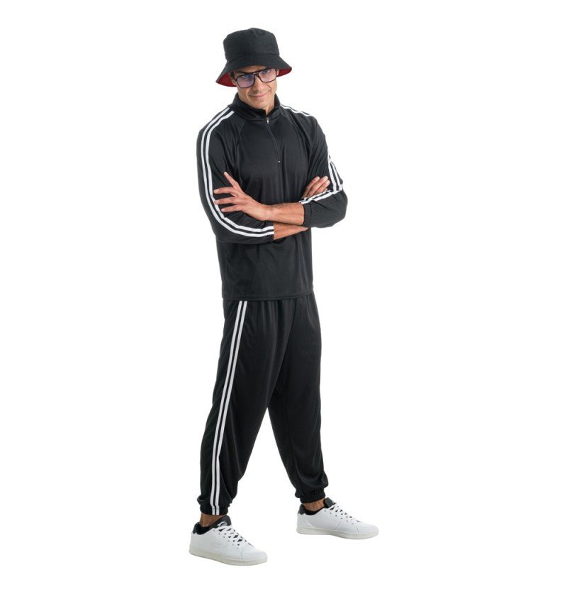Siisti ja huomiota herättävä asu, jossa yhdistyy moderni musta-hopea-look ja aito räppäritunnelma