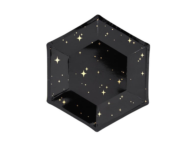 Mustat lautaset kultaiset tähdet 20cm 6kpl