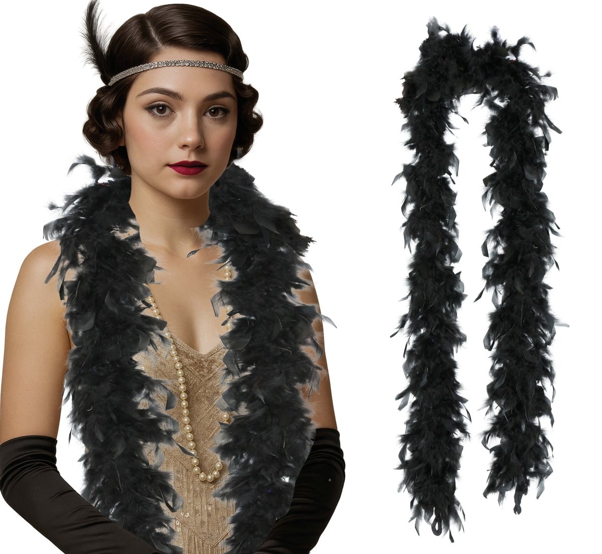 Lisää tyyliä ja tyyliä asuusi tällä mustalla höyhenboalla. Täydellinen juhliin, gaaloihin, teemailtoihin, karnevaaleihin tai lavaesiintymisiin. Boa on kevyt, pehmeä ja luo välittömästi tyylikkään ja juhlavan ilmeen.