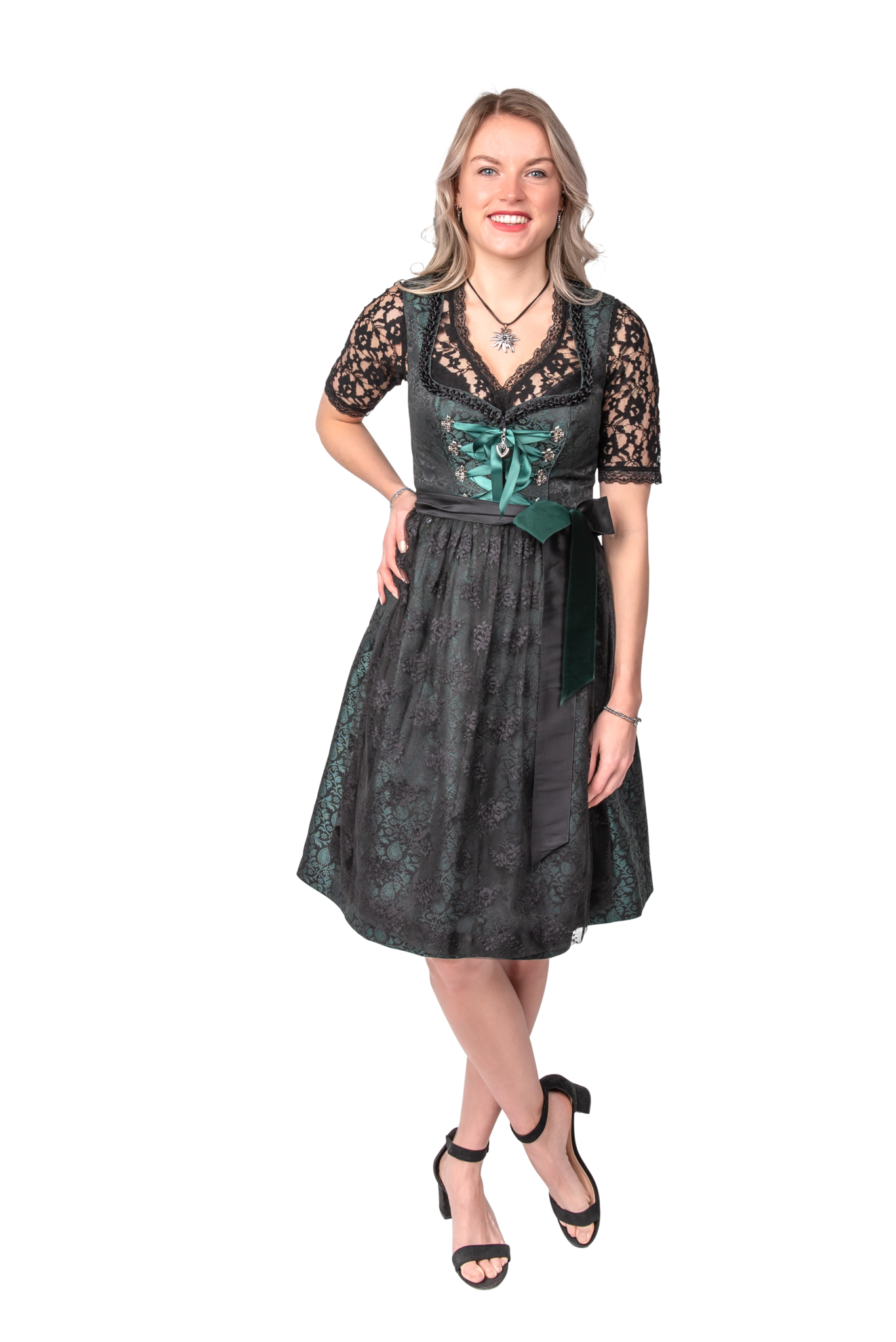 Musta Vihreä Dirndl Mekko Oktoberfest Naiset Jaquard Jaquard