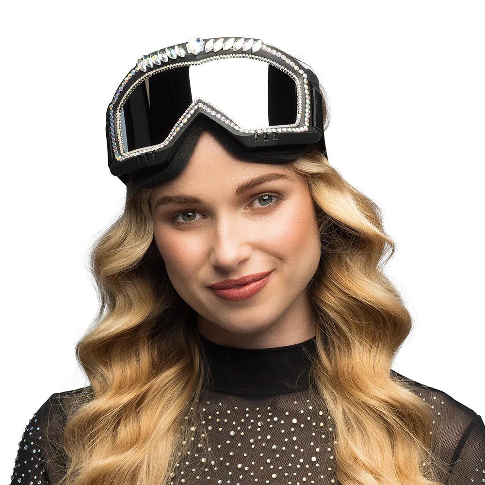 Tämä ainutlaatuinen musta bilehiihtolasi on täydellinen asuste kaikille bileeläimille, jotka haluavat olla valokeilassa. Urheilullinen muotoilu yhdistettynä kiiltäviin kiviin tekee näistä kauniista bailulaseista pakollisen lisävarusteen kaikkiin festivaali- tai juhla-asuihin.