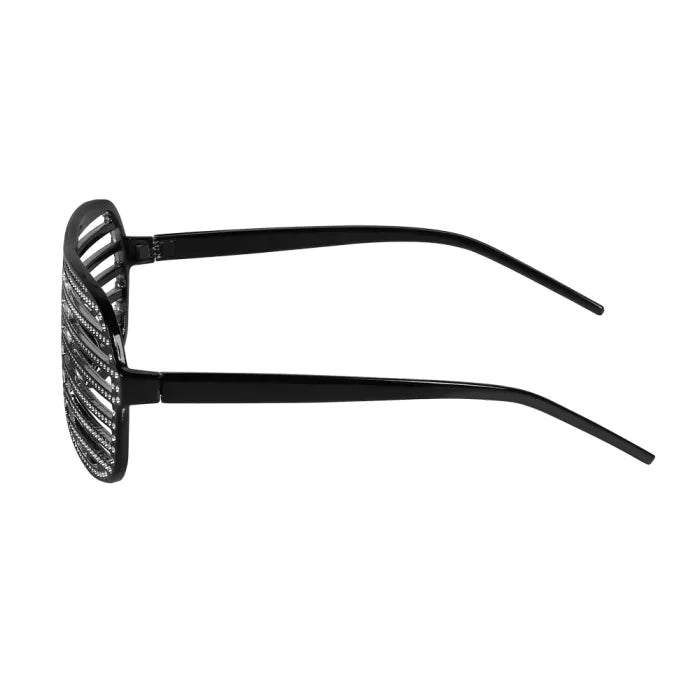Nämä siistit sulkimen juhlalasit sopivat täydellisesti festarikävijöille, juhlijoille ja 90-luvun fanaatikoille. Mustat säleikköbilelasit on koristeltu glitterkivillä, jotka tuovat glamouria hauskaan retro 90-luvun asuun karnevaaleille, huonon maun juhliin tai naamiaisiin.