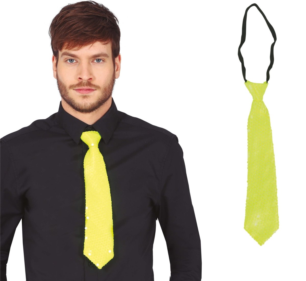 Neon keltainen solmio Glitter 37cm