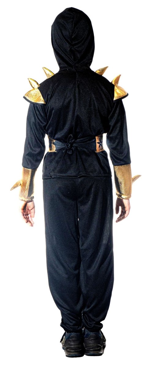 Tämä kultainen ninja-asu koostuu hupullisesta yläosasta, housuista, naamarista ja vyöstä. Täydellinen pukeutumis- tai teemapuku. Valmistettu 100% polyesteristä.
