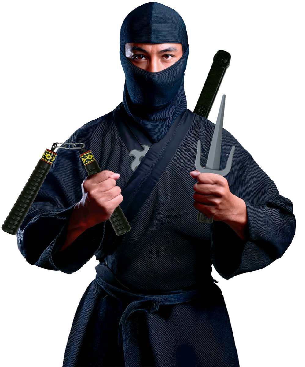 Ryhdy todelliseksi ninjaksi tällä täydellisellä 5-osaisella tarvikesarjalla. Setti sisältää erilaisia mustia ja hopeisia muovisia aseita ja tarvikkeita, jotka sopivat täydellisesti ninja-asun täydentämiseen. Valmistettu kevyestä ja turvallisesta PVC:stä, ihanteellinen teemajuhliin, karnevaaleihin tai lavaesityksiin.