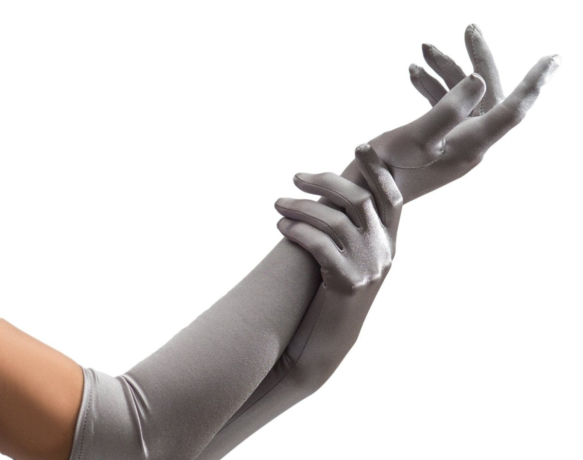 Sisältö: Nailonkäsineet hopeanväriset pitkät - pari - 40 cm