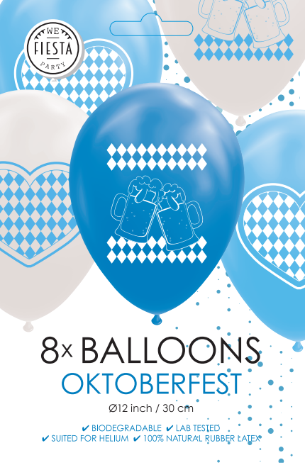 Oktoberfest ilmapallot sininen valkoinen 30cm 8kpl