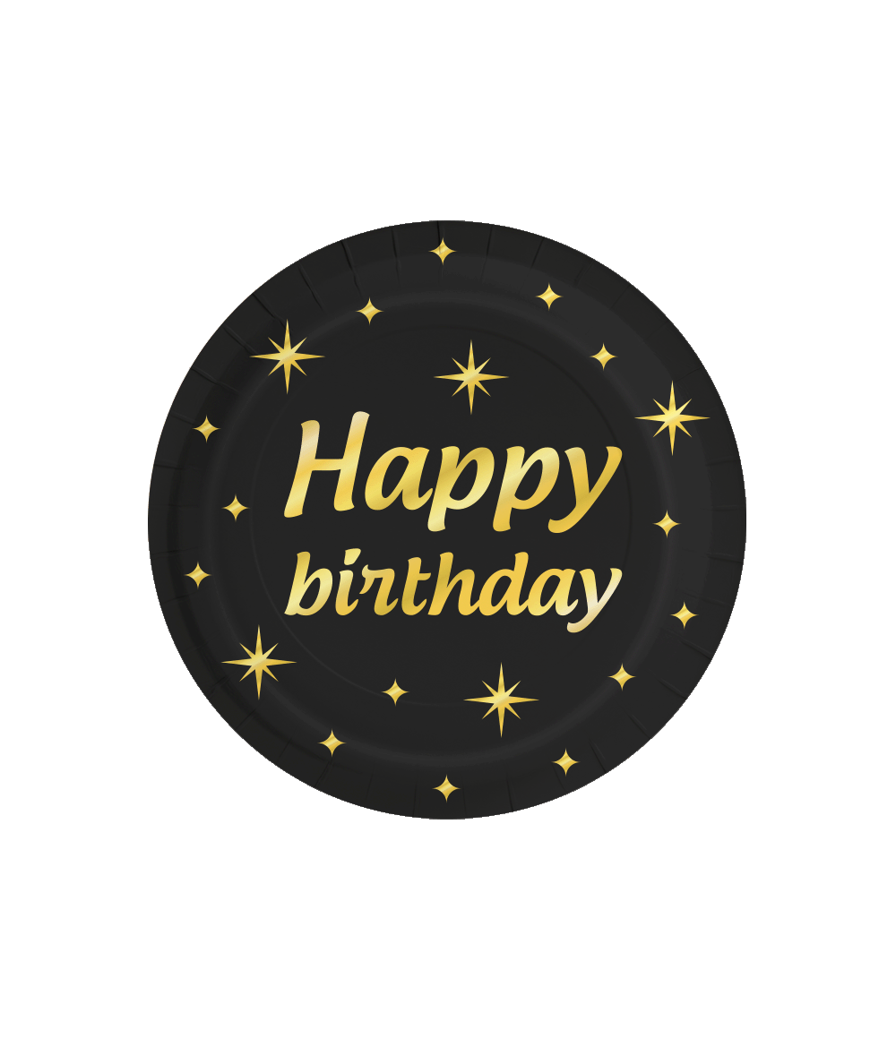 Hyvää syntymäpäivää lautaset musta kulta 23cm 8kpl