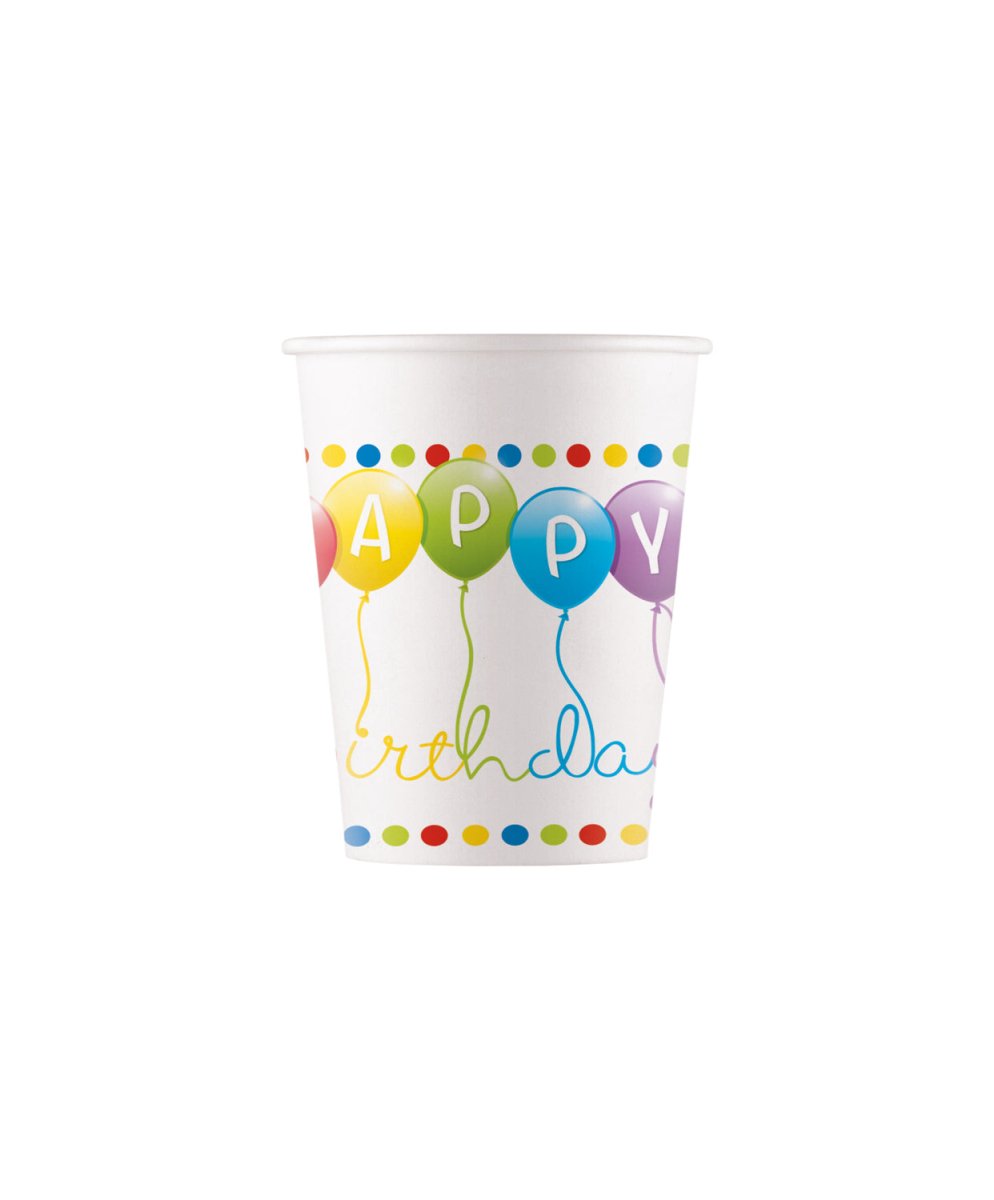 Hyvää syntymäpäivää kuppi paperi 200ml 8 kpl