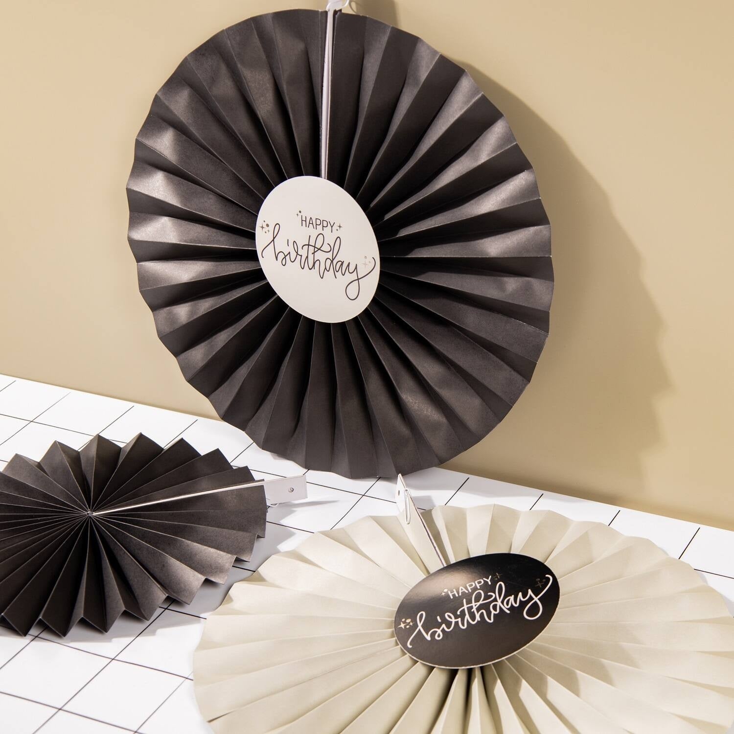 Hyvää syntymäpäivää paperituulettimet musta 3kpl