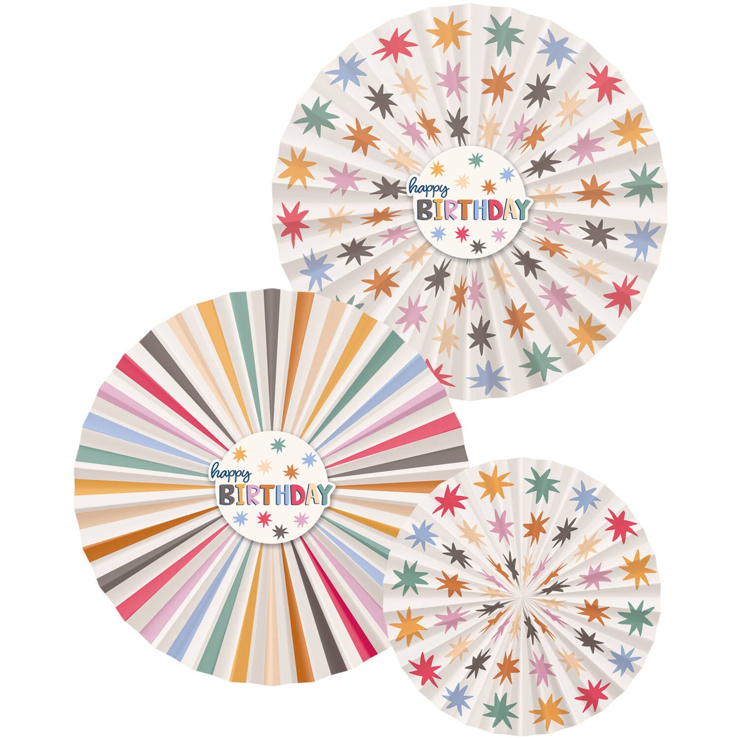 Hyvää syntymäpäivää paperituulettimet värilliset 3kpl