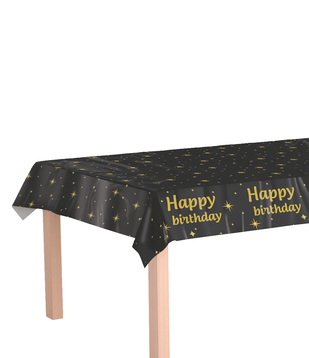 Onnittelut pöytäliina Musta Kulta 2.74m
