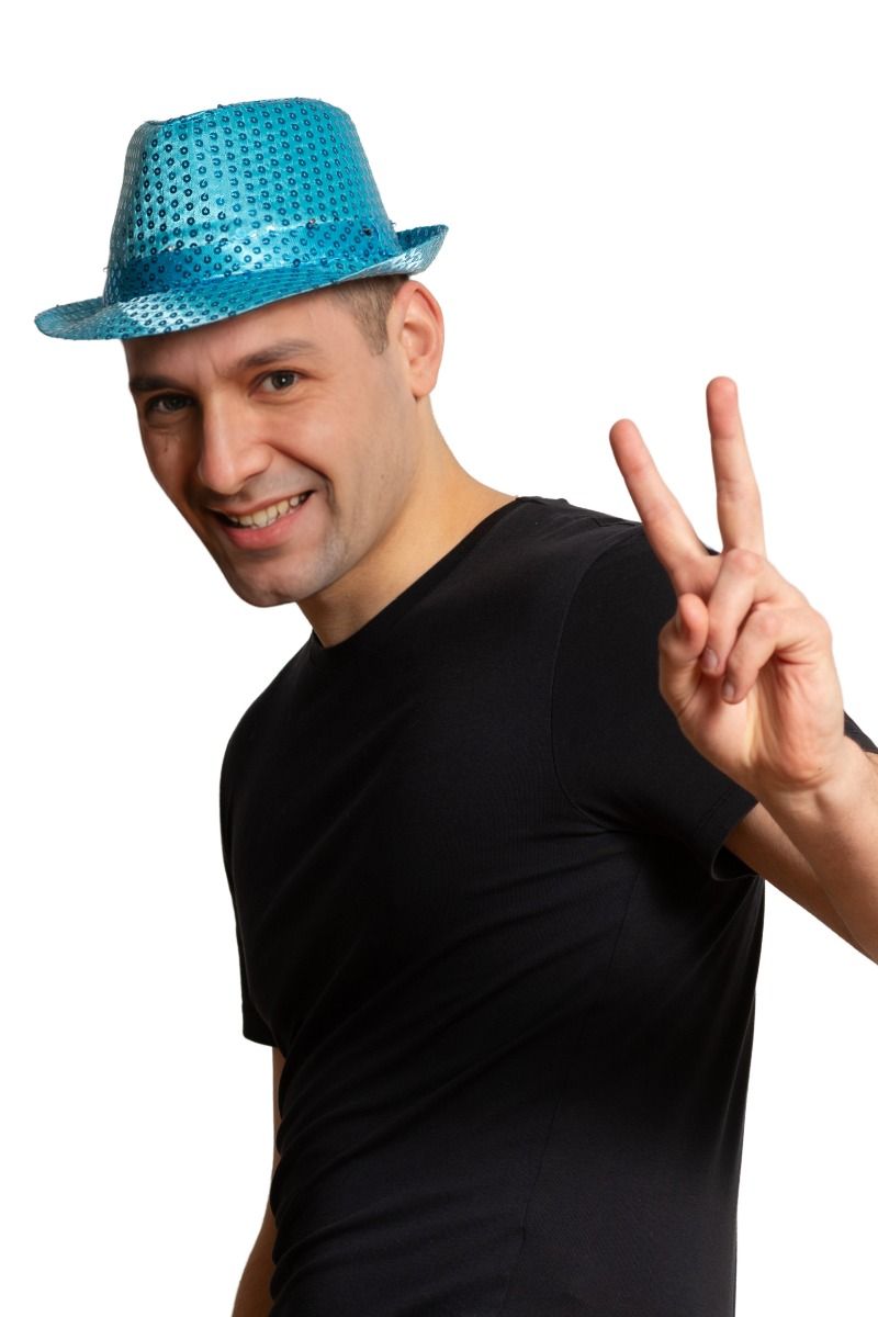 Paljettihattu turkoosi valolla ja paristoilla sis. paristot