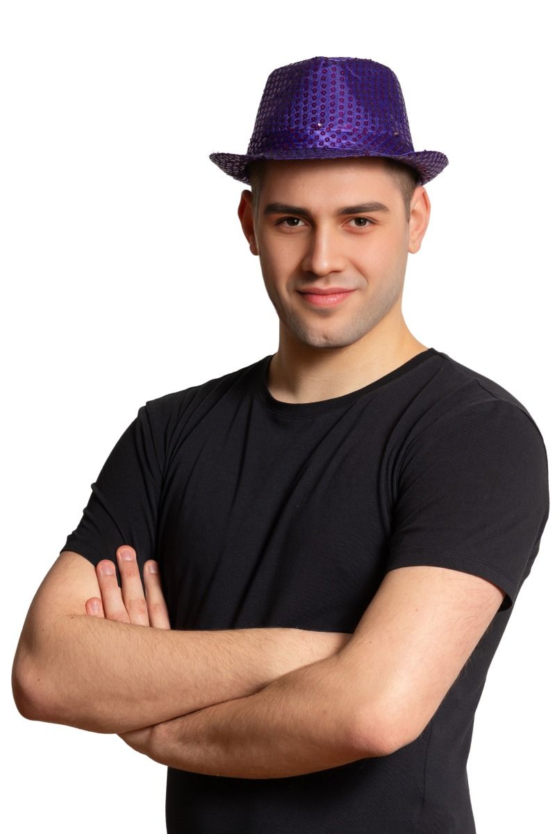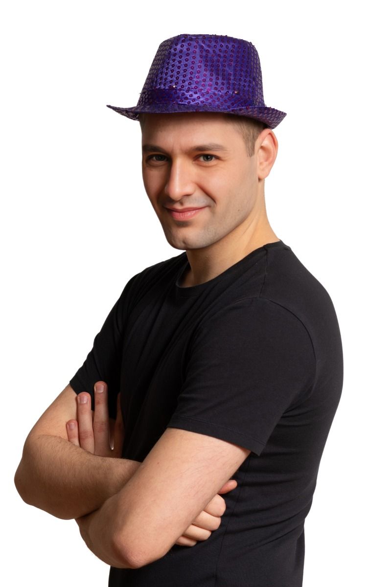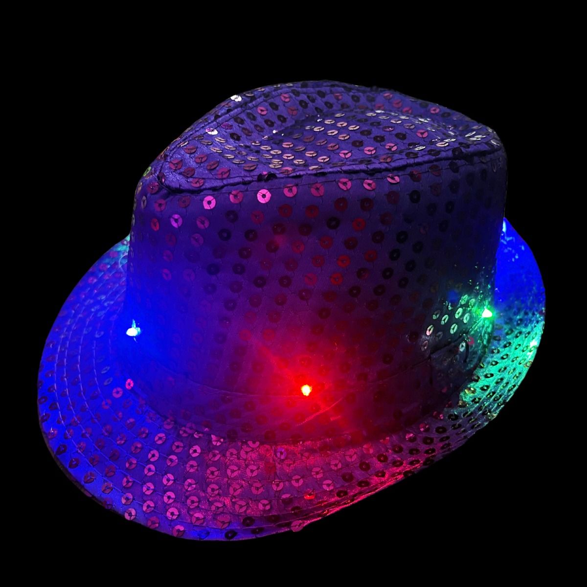 Paljettihattu violetti valolla ja paristoilla sis. paristot