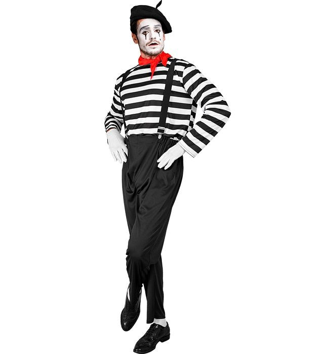 Herätä klassisen katuteatterin taika henkiin tällä tyylikkäällä ja täydellisellä pantomiimipuvulla. Tämä ajaton asu on saanut inspiraationsa perinteisestä pantomiimitaiteilijasta ja takaa tunnistettavan, tyylikkään ja leikkisän ilmeen.