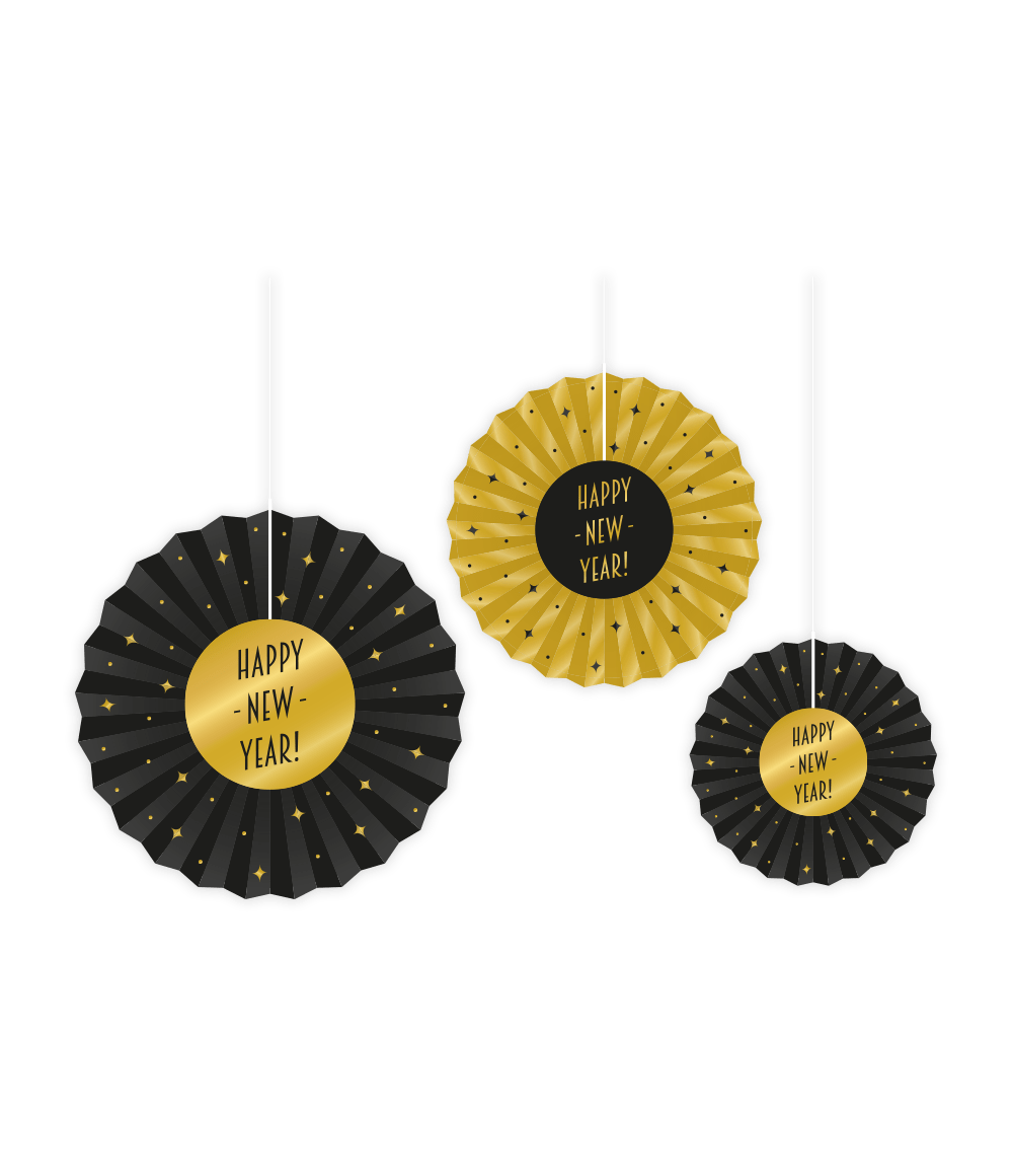 Paperituulettimet Happy New Year Set 20-40cm 3-osainen sarja