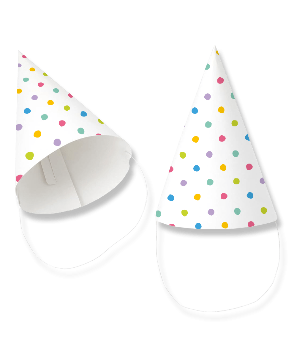 Näillä iloisilla Paperihatuilla - Party Dots kaikki juhlat alkavat heti riehakkaasti! Värikäs pilkkupainatus antaa hatuille leikkisän, kesäisen ilmeen, joka sopii täydellisesti lastenjuhliin, syntymäpäiville ja iloisiin teemajuhliin.