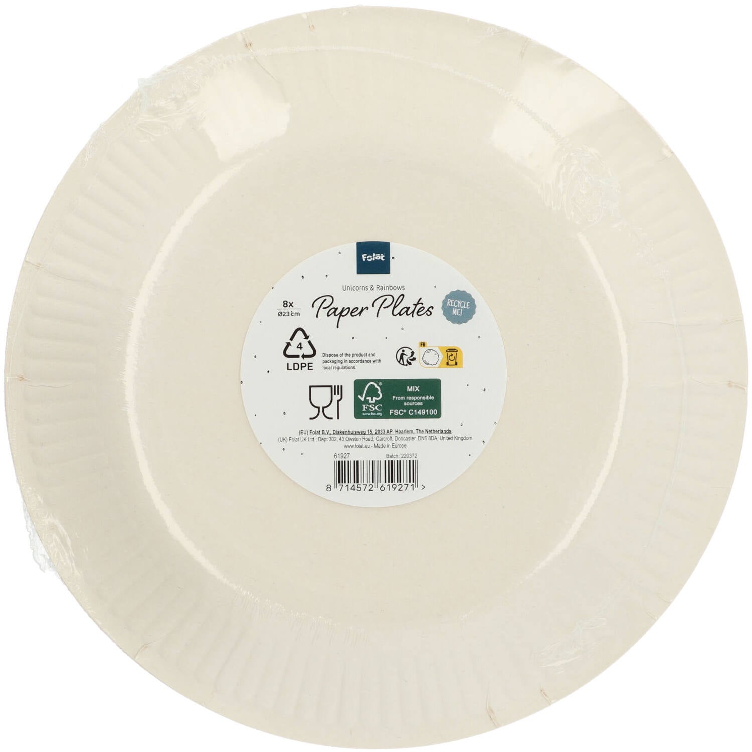 Paperilautaset - Yksisarviset ja sateenkaaret - 23 cm - 8 kpl
