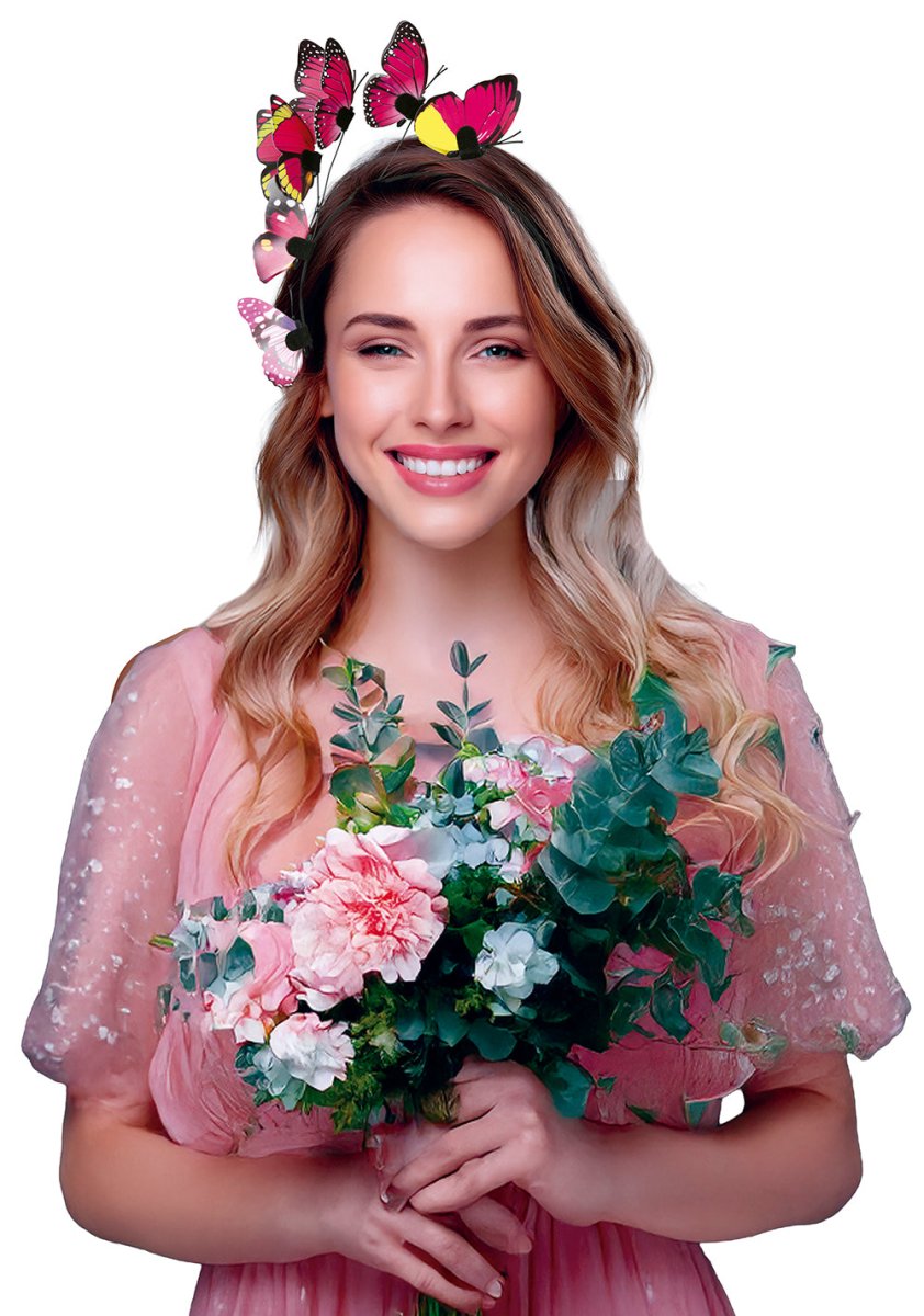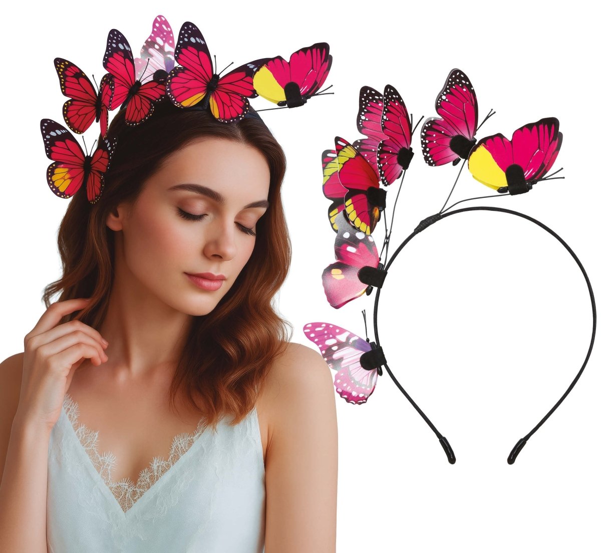 Perhonen hiusnauha Musta Vaaleanpunainen