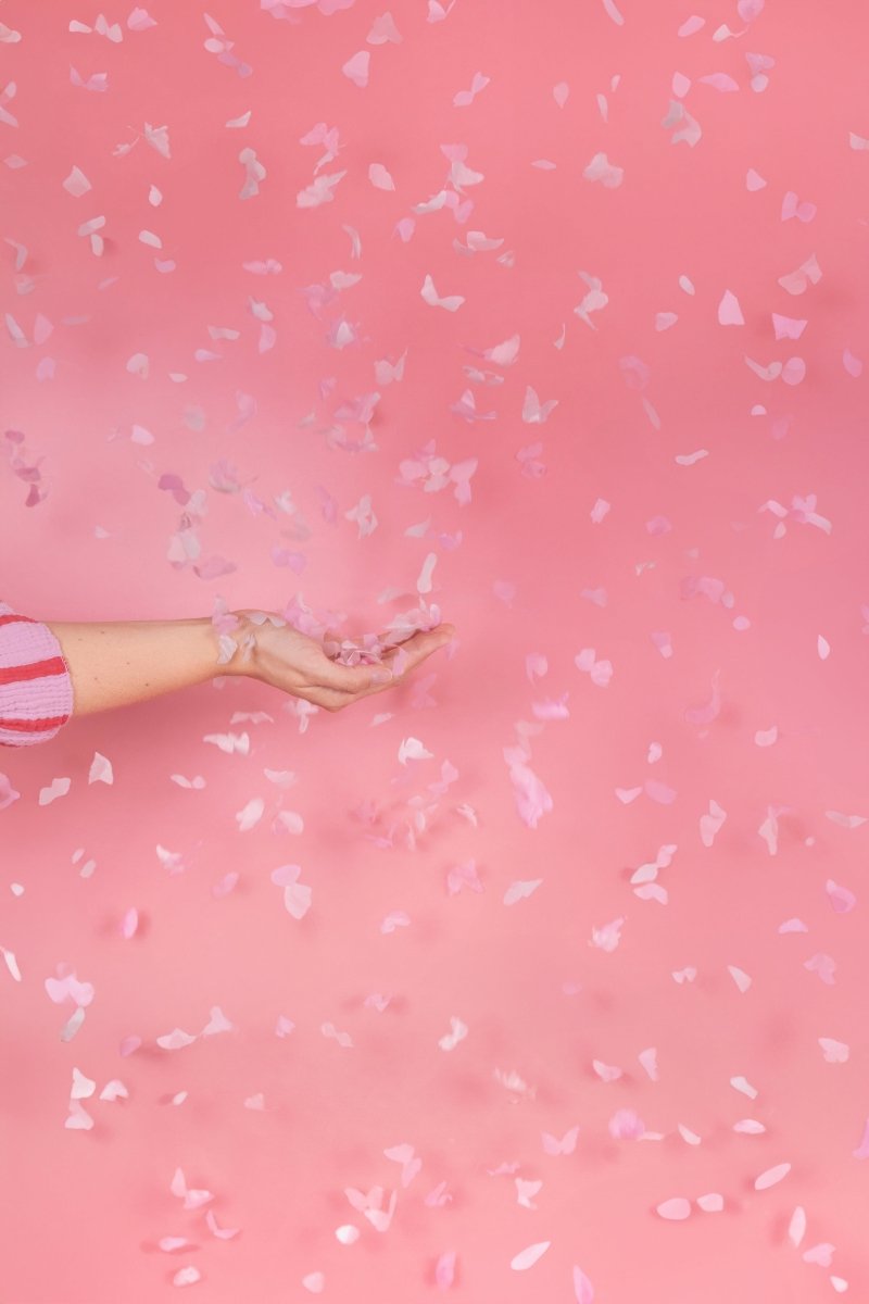 Perhonen konfettitykki vaaleanpunainen 20cm