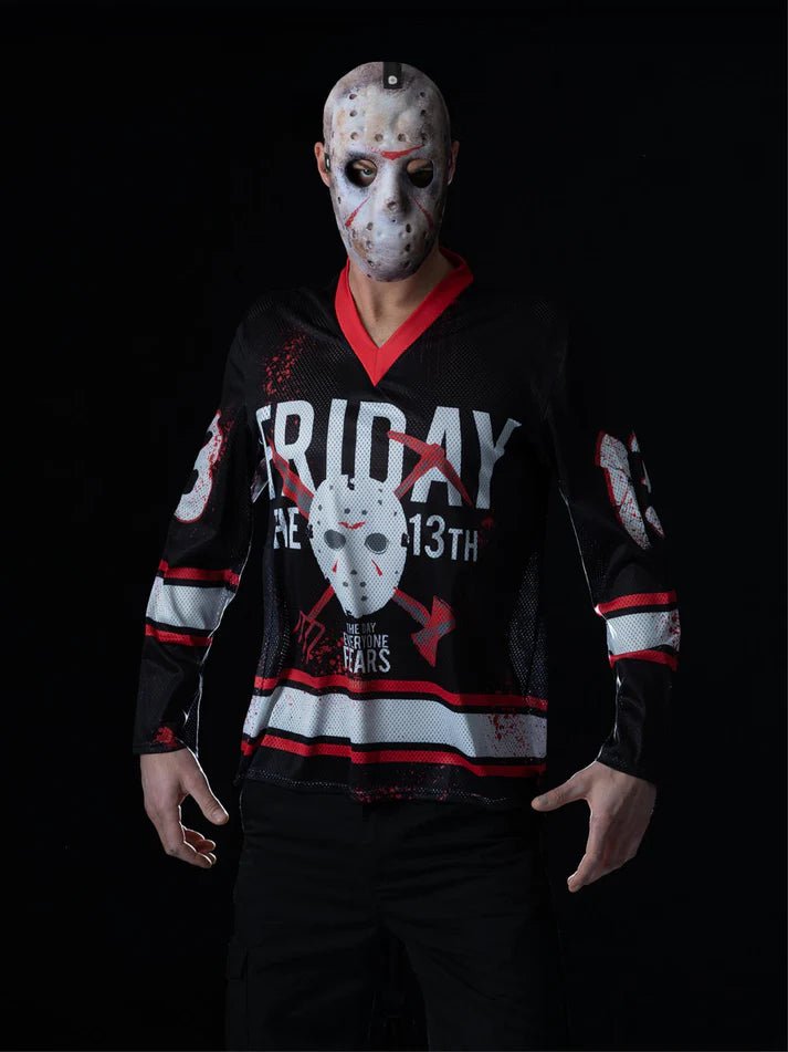Ole täysin Jason Voorhees tämän jääkiekkopuvun kanssa. Ihanteellinen yhdistettäväksi yhteensopivaan naamariin aitoa kauhuilmettä varten Halloweenissa tai teemajuhlissa.