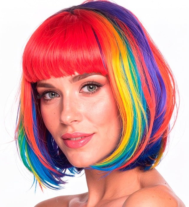 Tämä sateenkaaren värinen peruukki on täydellinen asuste pukeutumiseen tai juhliin.