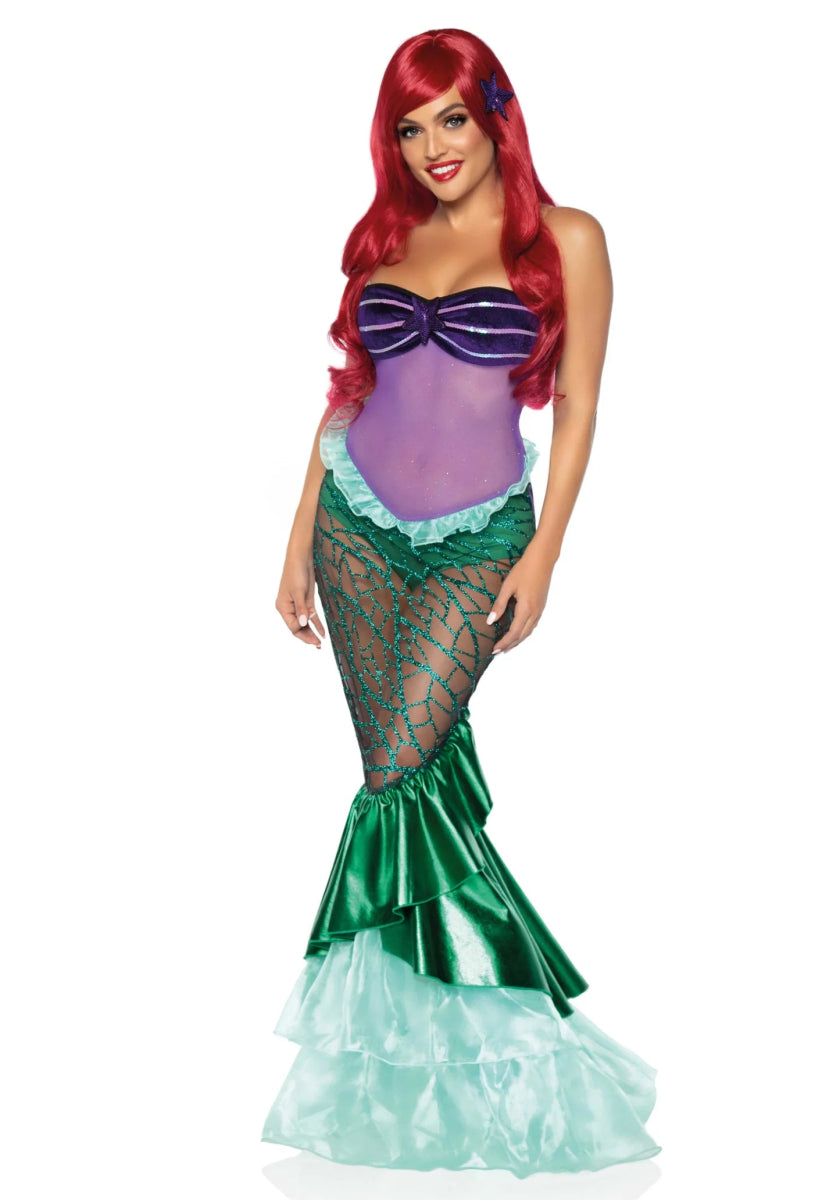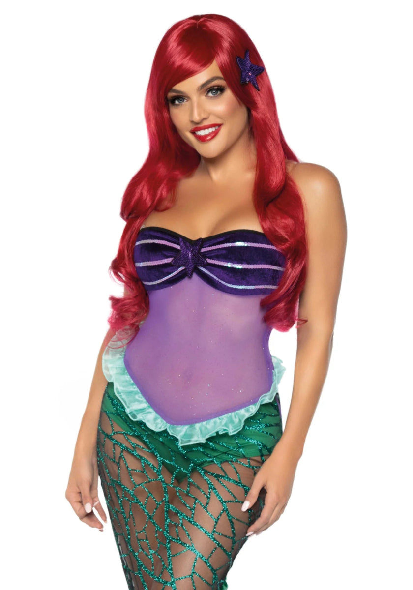 🌟 Yhdessä Leg Avenuen pitkän viininpunaisen peruukin kanssa saat täydellisen merenneidon lookin