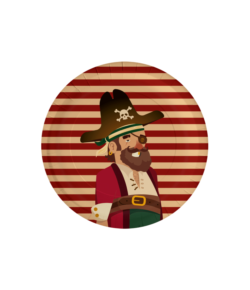 Pöydän koristeleminen kauniisti lastenjuhliin onnistuu täydellisesti Paper Dreamsin hauskalla "merirosvot"-pöydänkoristeella! Merirosvoaiheiset lautaset sopivat täydellisesti yhteen muiden pöydänkoristeiden kanssa, sillä merirosvoaiheisten lautasten lisäksi saatavilla on myös lautasliinoja, kuppeja, kutsukortteja, juhlakasseja ja juhlakoristeita!