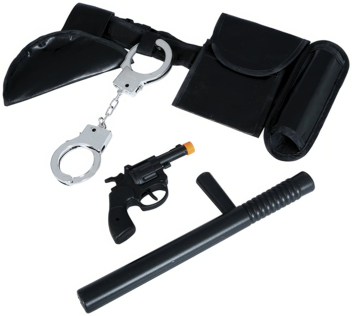 Sisältö: Vyö, pistooli, pamppu, käsiraudat - Väri: Musta - Palosuojattu: Kyllä - Materiaali: Polyesteri, PVC