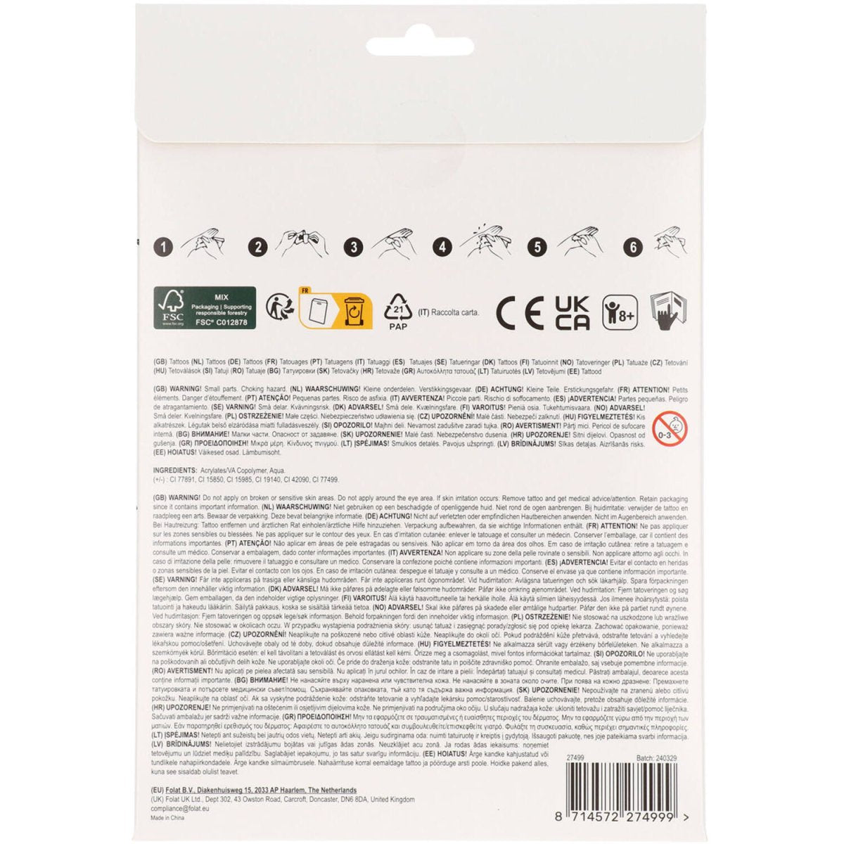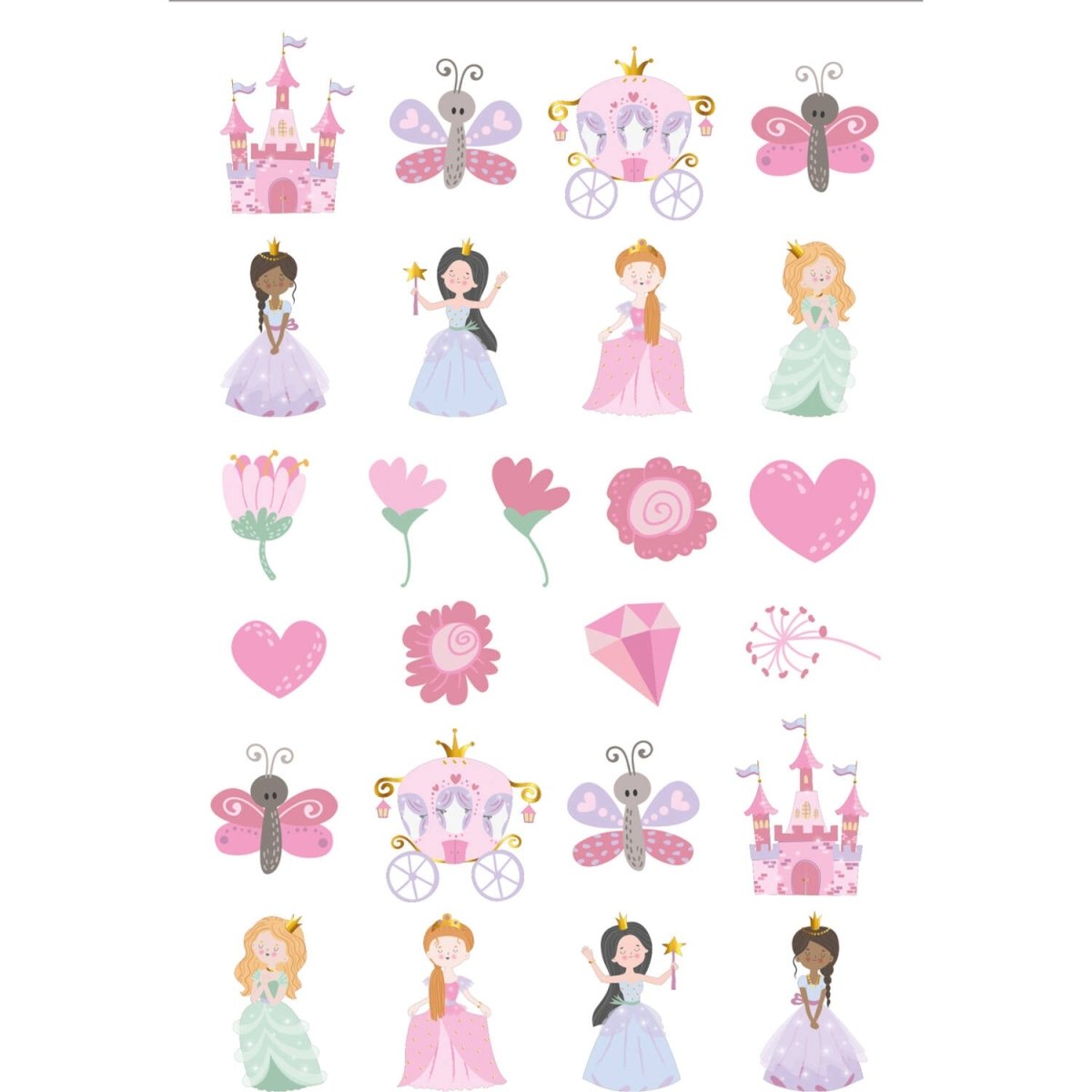 Näytä kuka on prinsessa! Tatuoinnit - Kaunis prinsessa - 6 kpl. Sisältö: 1 tatuointitarra-arkki, jossa on 25 tatuointia. Käytettäväksi esimerkiksi seuraavissa juhlissa/juhlatilaisuuksissa: Lastenjuhlat, syntymäpäivä, teemajuhlat. Nämä ihanat tekotatuoinnit tekevät kaikista prinsessajuhlista unohtumattomat. Pakkauksessa on 1 tatuointitarra-arkki, joka sisältää 25 tatuointia. Pakkauksen takana kerrotaan, miten tatuointeja käytetään. Tarra-arkin koko on 14 x 21 cm. Nämä tatuoinnit kuuluvat Folatin Pretty Princess -mallistoon. Tämä tuote on valmistettu akrylaatti/VA-kopolymeeristä ja vedestä.
