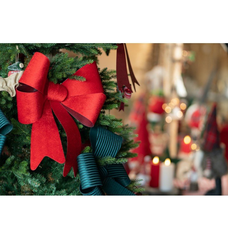 Tämä suuri koristeellinen rusetti sopii erinomaisesti suurten lahjojen, juhlallisuuksien tai näyteikkunoiden koristeluun. Tukevan materiaalin ansiosta rusetti säilyttää muotonsa ja ulkonäkönsä myös uudelleenkäytössä.
